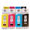 2. Colores Incluidos: El paquete generalmente contiene las tintas básicas necesarias para la reproducción de colores en sublimación. Estos colores son cian, magenta, amarillo y negro (CMYK), que se combinan para crear una amplia gama de tonalidades.